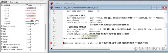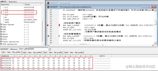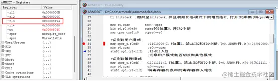 通过 ARM 汇编指令,在各种处理器模式下切换并观察各种模式下寄存器的区别;掌握ARM 不同模式的进入与退出。