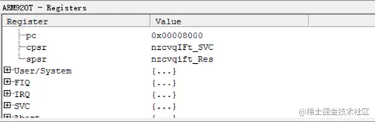 由上图可知,当进行切换管理模式时,模式仍是用户模式,因此可知切换成用户模式之后,不能操作CPSR返回到其他模式。