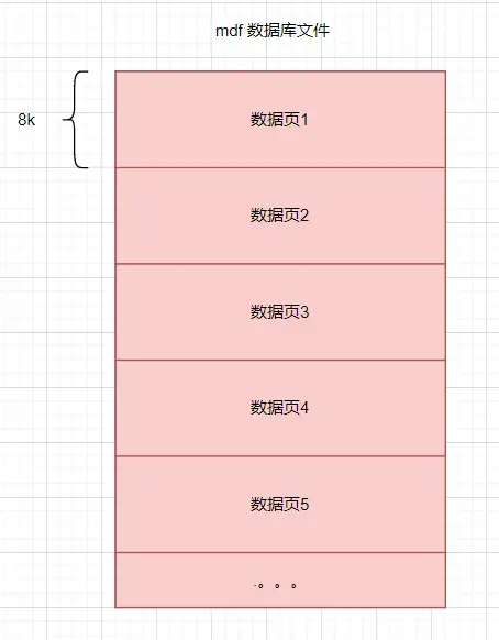 一般来说,对大块资源或者数据进行高效管理都会按照一定粒度来划分的,比如说 Windows 对内存的管理就是按照 内存页 (4k) 来进行划分,言外之意就是 SQLSERVER 对 mdf 的管理也是按照 数据页 (8k) 来划分的,画个图大概就是这样的。