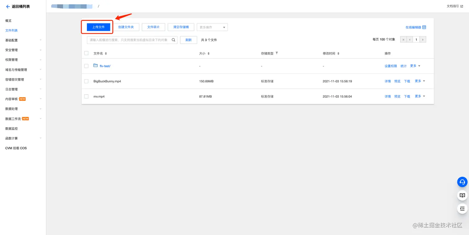 在场景三的基础上,为了保证存储桶数据的安全性,我们把存储桶设置为私有读写权限,同时结合 PM3U8 API,进行私有 HLS 视频文件的播放,具体步骤如下:
