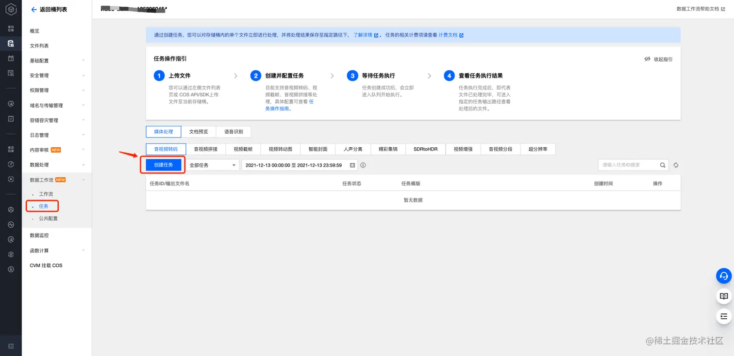 1、创建音视频转码任务;