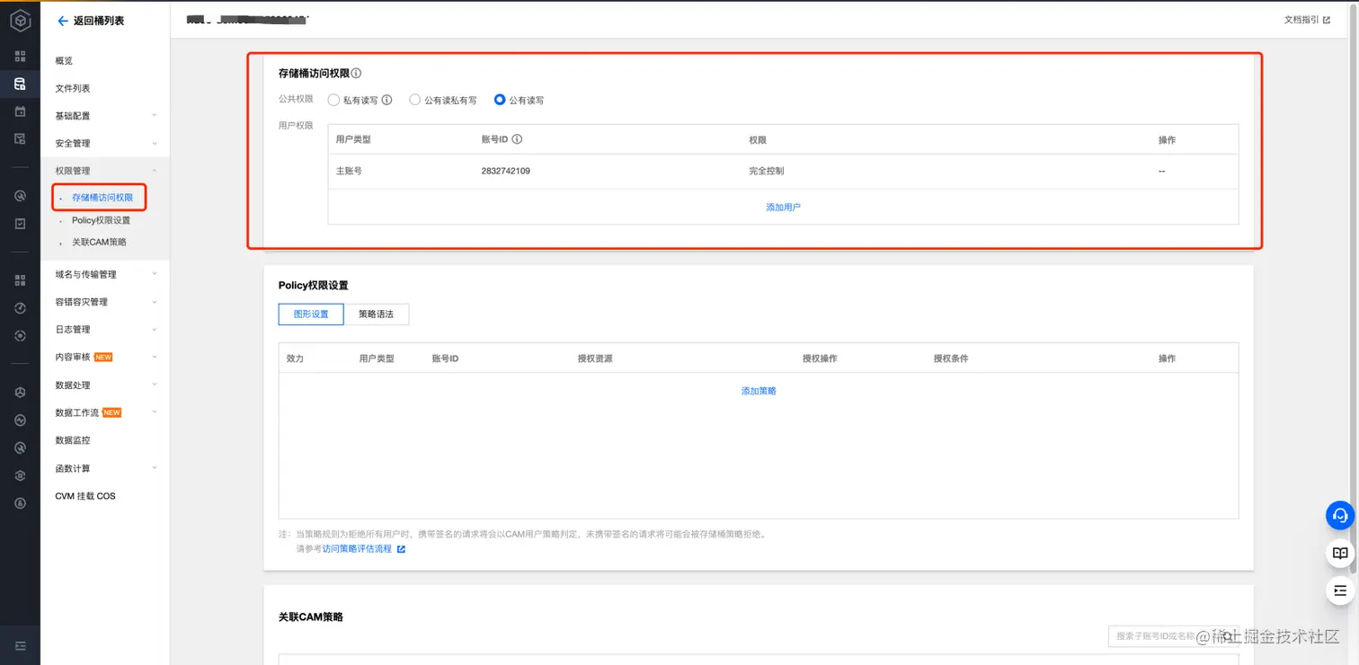 1、将存储桶设置为公有读;