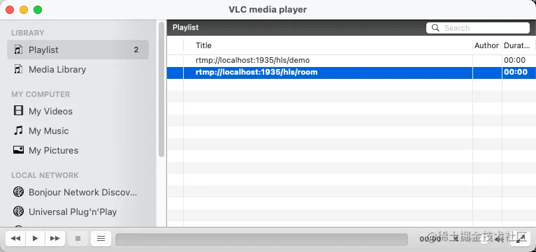 这里播放播放地址,需要将**localhost** 换成你的 Mac 机器的网络IP地址: x.x.x.x:1935