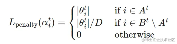 为了防止马太效应,Top-KAST 通过 L2 正则化损失来惩罚激活权重,以鼓励产生更多新的探索。在更新期间,B∖A 中的参数比 A 受到更多的惩罚以稳定掩码。