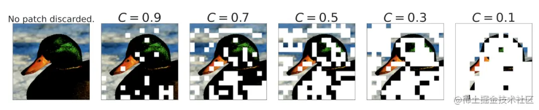 图 15. 当 C<1 时,根据优先级分数丢弃图像 patch 的方式。