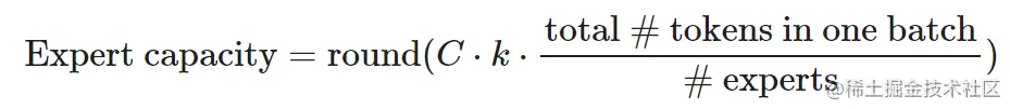 使用 MoE 架构,在解码时仅使用部分参数,因此节省了推理成本。每个专家的容量可以通过超参数容量因子 C 进行调整,专家容量定义为: