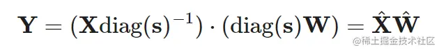 基于每个通道的平滑因子 s,SmoothQuant 根据以下公式缩放权重: