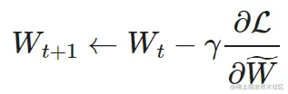 STE 计算剪枝后的网络 的密集参数的梯度 , 并将其作为近似值应用于稠密 网络 W: