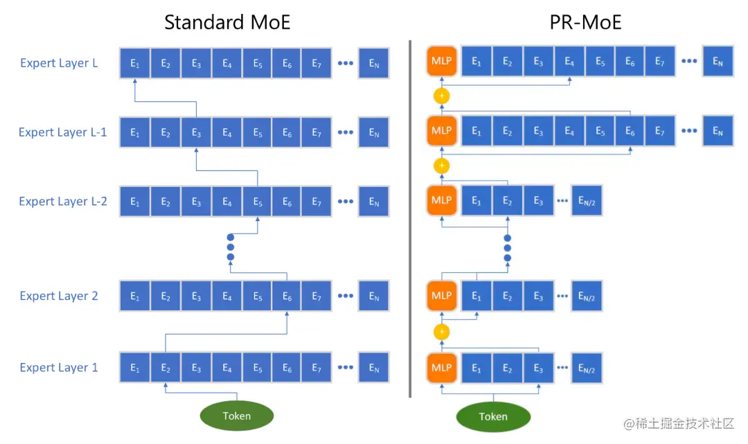 图 16。PR MoE 架构与标准 MoE 的对比图。