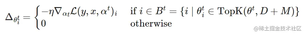 其中 TopK (θ,x) 是根据大小排序后从 θ 中的前 x 个权重。