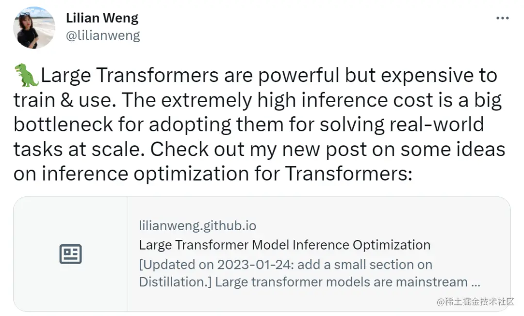 在这篇文章中,领导 OpenAI 应用研究的 Lilian Weng 写了一篇博客,文中介绍了几种提高 transformer 推理效率的方法****。一些是通用的网络压缩方法,而另一些则应用于特定的 transformer 架构。