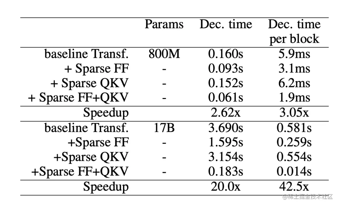 稀疏 Transformer 将 Transformer 架构中的自注意力层和 FFN 层稀疏化,使单个样本推理的速度提高了 37 倍。
