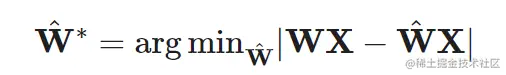 从另一个角度来看,量化问题是一个优化问题。给定一个权重矩阵 W 和一个输入矩阵 X ,想要找到一个量化的权重矩阵 W^ 来最小化如下所示的 MSE 损失: