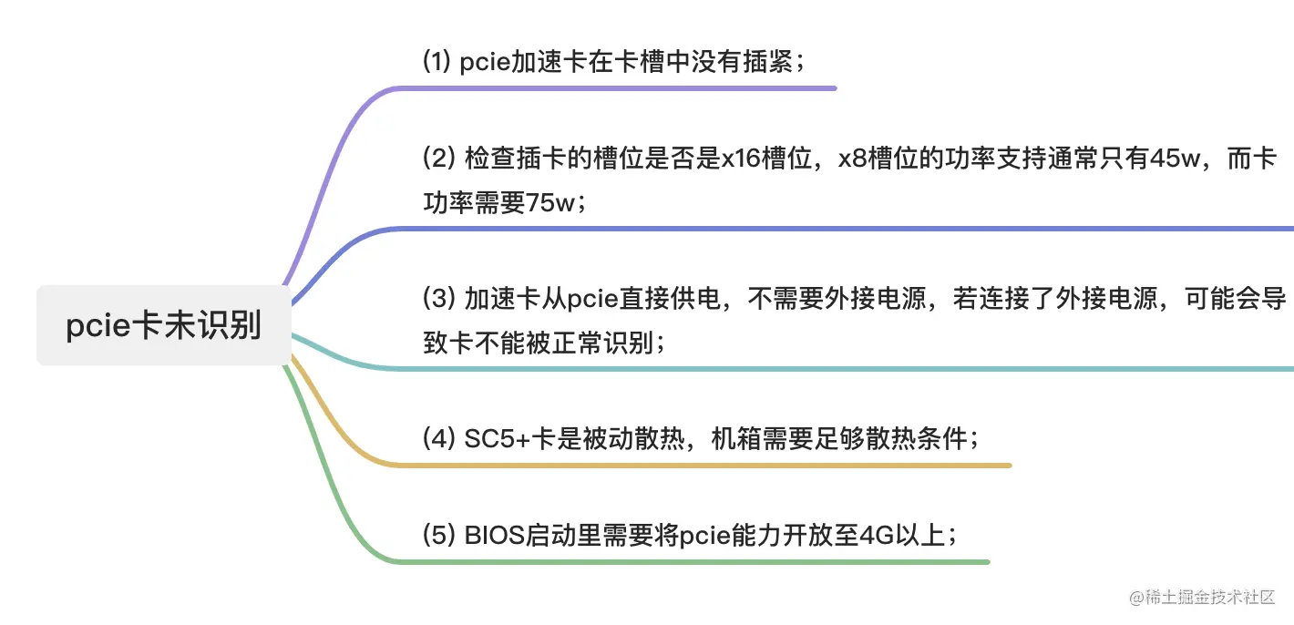 当然,一帆风顺总是让大家心情愉悦,但现实总会有一些坑。倘若PCIe加速卡没有被系统正常识别,则需要首先排除故障,通常引起pcie加速卡未被正常识别的可能原因有: