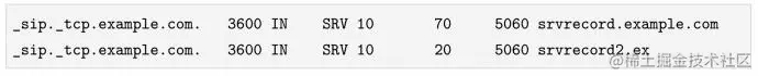 SRV记录是通过描述某些服务协议和地址促进服务发现的。SRV记录通常定义一个符号名称和作为域名一部分的传输协议(如TCP),并定义给定服务的优先级、权重、端口和目标: