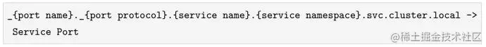 Kubernetes DNS的SRV记录是按照一个约定俗成的规定实现了对服务端口的查询: