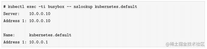 下面运行一个带nslookup命令的busybox容器,说明Kubernetes域名解析的使用。