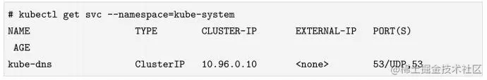 如上所示,Kube-dns的IP地址是10.0.0.1,而API Server的Cluster IP地址是10.0.0.10。