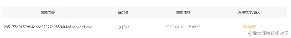 下面是我的得分,大家可以调整迭代次数、学习率等超参,或者增加全连接层,添加DropOut,来调整网络,大家加油哦。