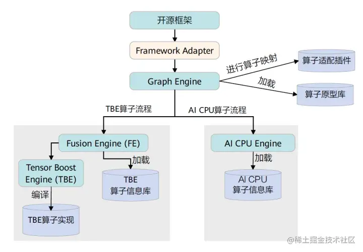 训练场景下,当我们跑训练脚本时,CANN内部实现逻辑会先将开源框架网络模型下发给Graph Engine进行图编译,该过程中会对网络中的算子进行编译。