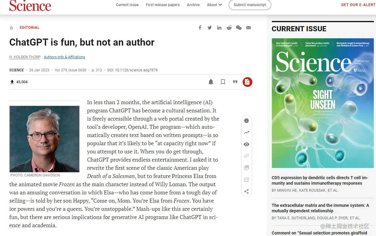 《Science》期刊主编H. HOLDEN THORP发表关于ChatGPT的社论:
