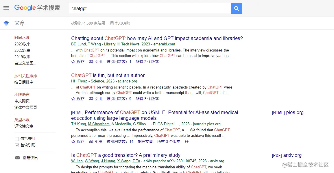 我们无论在知网、Google学术等平台上搜索ChatGpt,都会得到大量的检索结果。