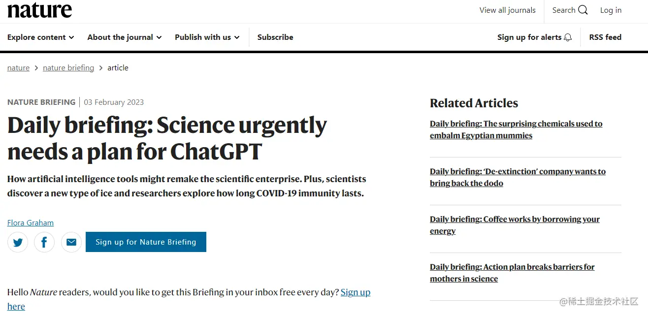 《Nature》2月3日的一篇文章指出:应提醒研究的所有贡献者,他们将对自己的工作负责,无论其是否由 ChatGPT 生成。每个作者都应该负责仔细核查他们的文本、结果、数据、代码和参考文献。