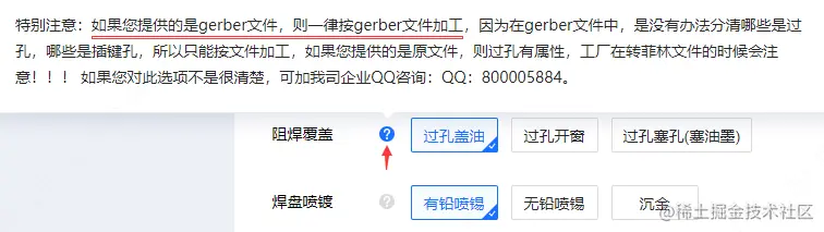 ① 对于输出Gerber下单的,嘉立创下单平台选择的"过孔盖油"或"过孔开窗"选项无效,过孔属性依Gerber文件为准