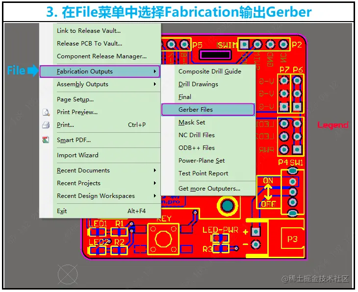 三、输出Gerber: 在File菜单中选择Fabrication Outputs-Gerber Files输出Gerber