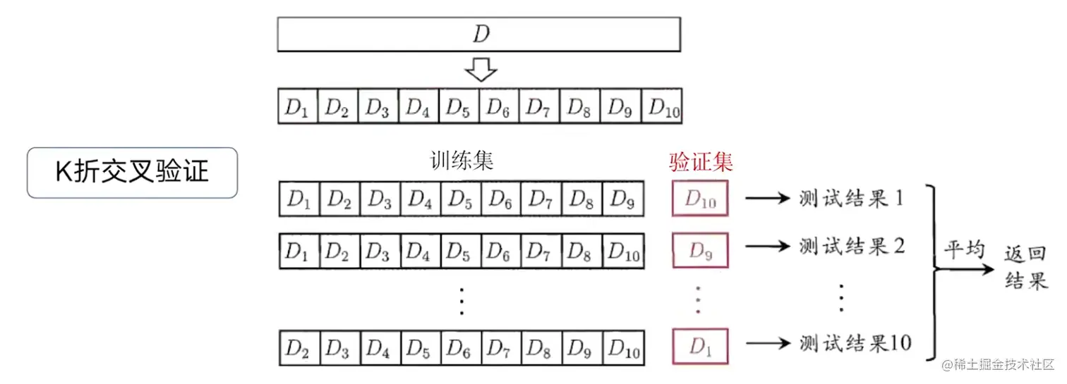 我们将数据分为K份,进行K次模型预测,我们选择其中一折数据作为验证集对模型进行验证