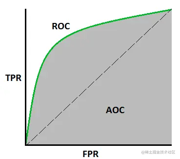 - 横轴为FPR,纵轴为TPR