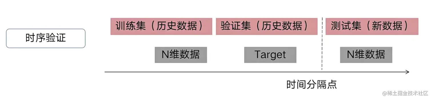假设我们需要根据历史数据预测未来3天的数据时,假设预测值与未来3天的真实值越相近,就说明两者相关性越高。我们选择是离测试节就未来三天比较近的一部分数据来去作为我们的验证集(离时间分隔点进行划分,选择较近的一部分),将验证集与测试集进行验证