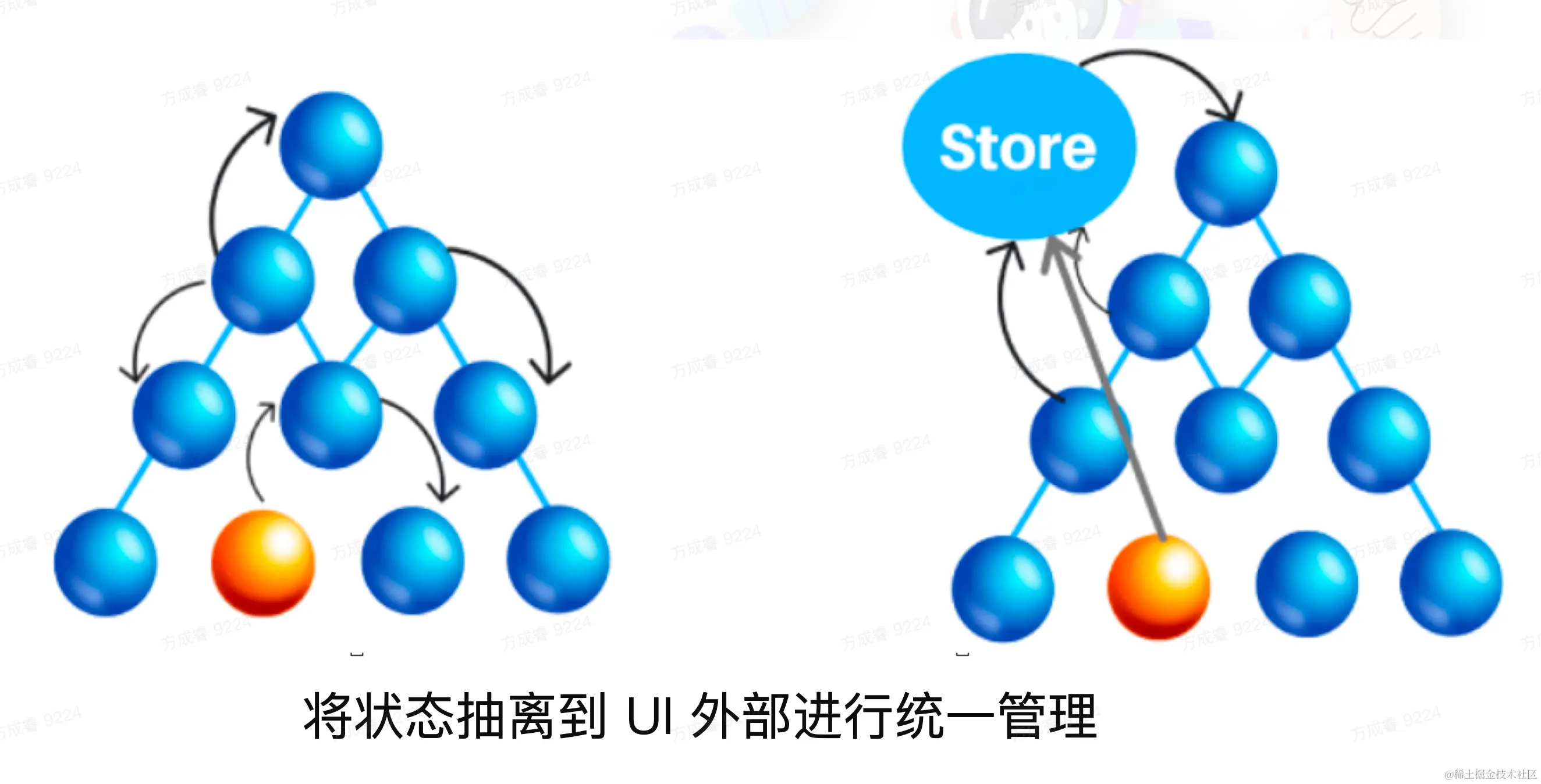 问题:状态和外部store强耦合,依赖很强;一般出现在业务代码,库不会这样