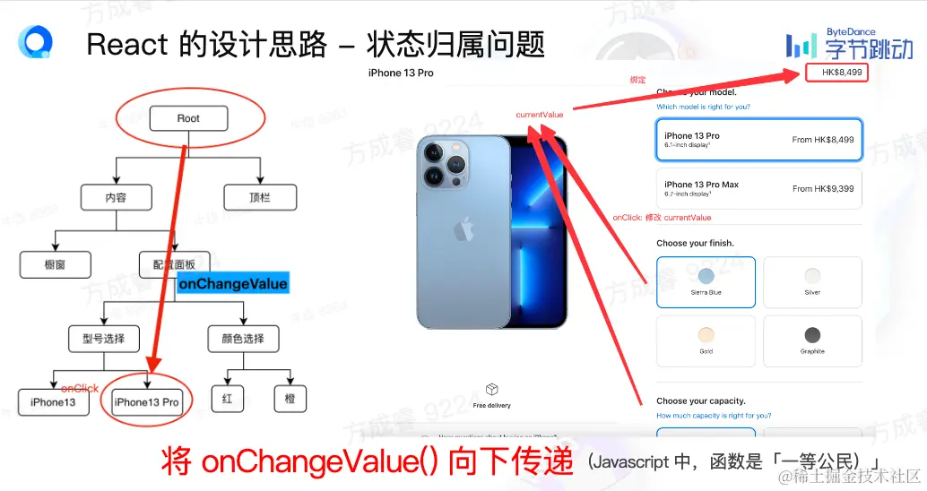 - 但是不代表子组件不能改变父组件,因为可以把函数往下传