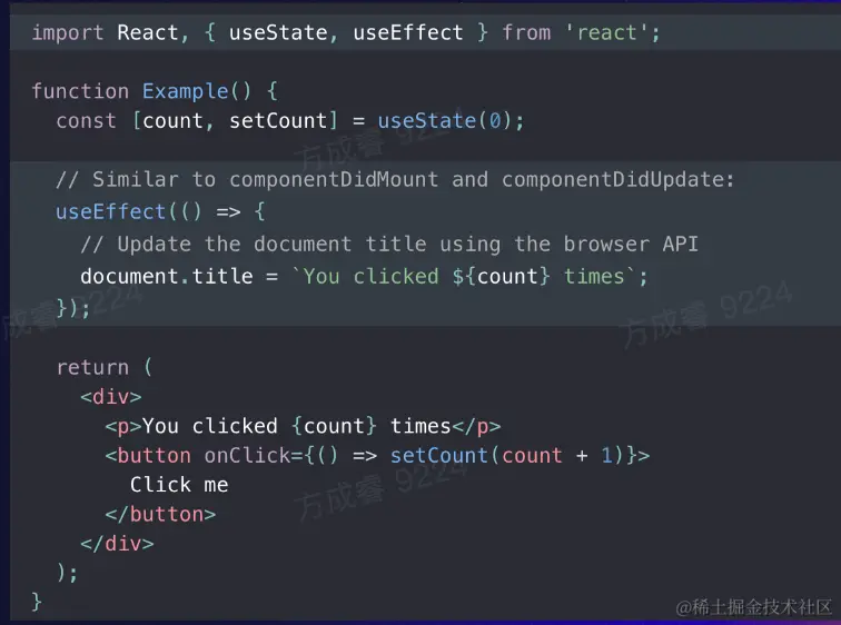 数组,第一个是状态本身,后面是setter,不是直接count=count+1,而是setCount(count)