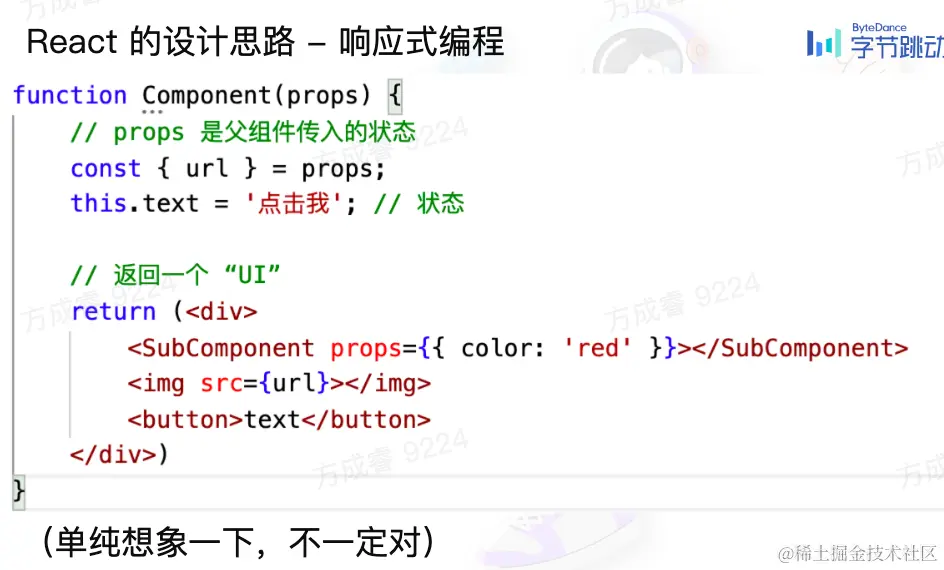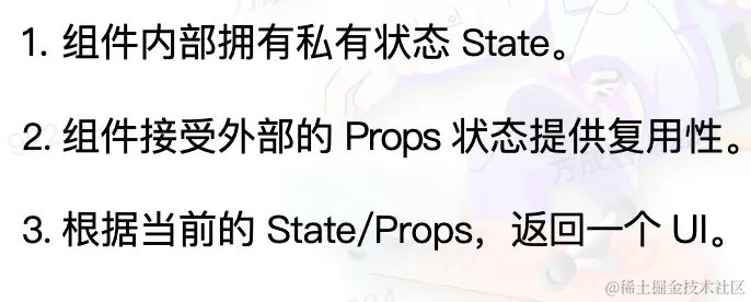 - Props:可以通过 props 将一个组件作为另一个组件的子组件传递进去,从而实现组件的嵌套和组合。