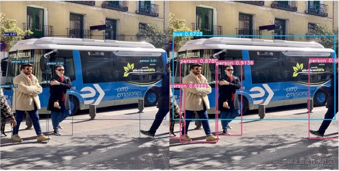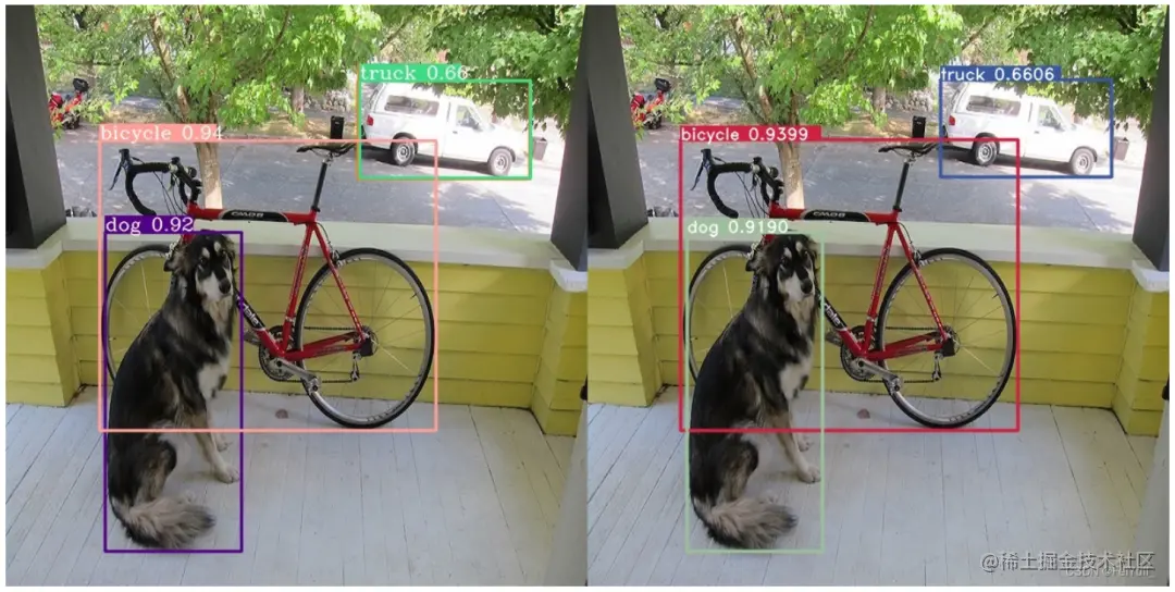 下面是左边是python框架推理结果,右边是TensorRT-Alpha推理结果。