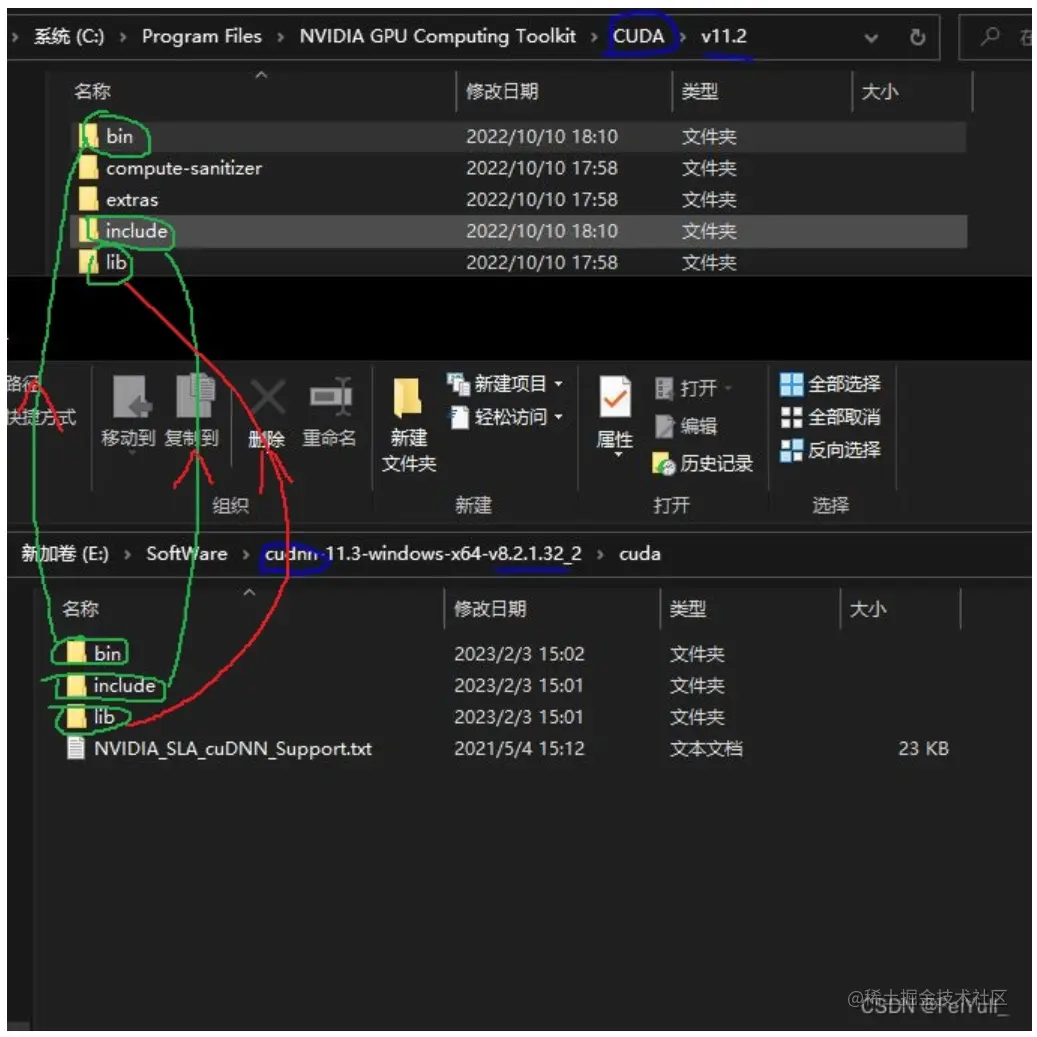 lib、bin中的文件也拷贝到对应cuda目录中