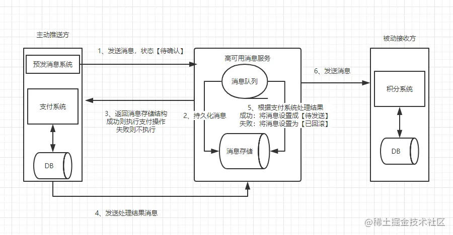 - 只有业务主动方本地事务执行成功,那么消息服务一定会投递消息给下游的业务被动方,并最终保证业务被动方一定能成功消费该消息