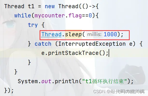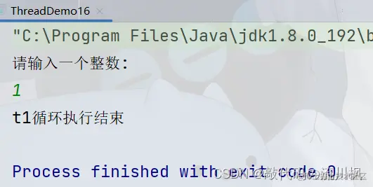 可以看到并没有打印"t1循环执行结束".我们预期的是t2改动了flag值,t1就应该结束循环了,但此时t1明显没有结束循环