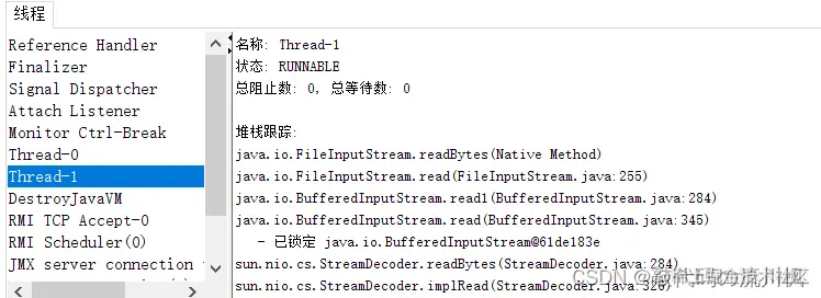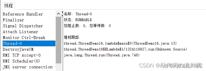 此时t2线程已经执行结束,t1线程还在RUNNABLE状态!!