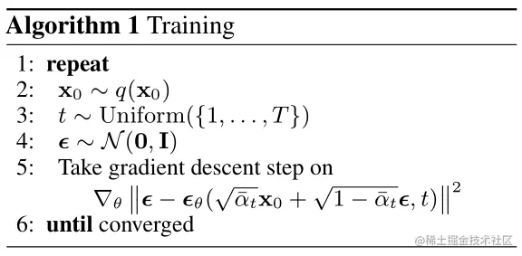 首先每个迭代就是从数据集中取真实图像 x0,并从均匀分布中采样一个时间步 t,