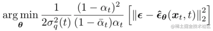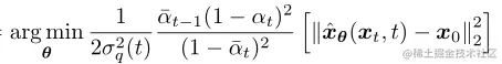 然后缩小分布 p(xt-1|xt) 和 q(xt-1|xt, x0) 之间差距,变成优化以下目标函数(推导过程详见参考资料[4]第13页):