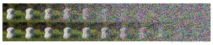而第二行改进的策略,添加噪声的速度就慢一些,看起来也更合理。