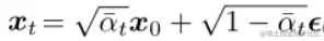 前面介绍前向扩散过程提到,xt 可以直接从 x0 得到: