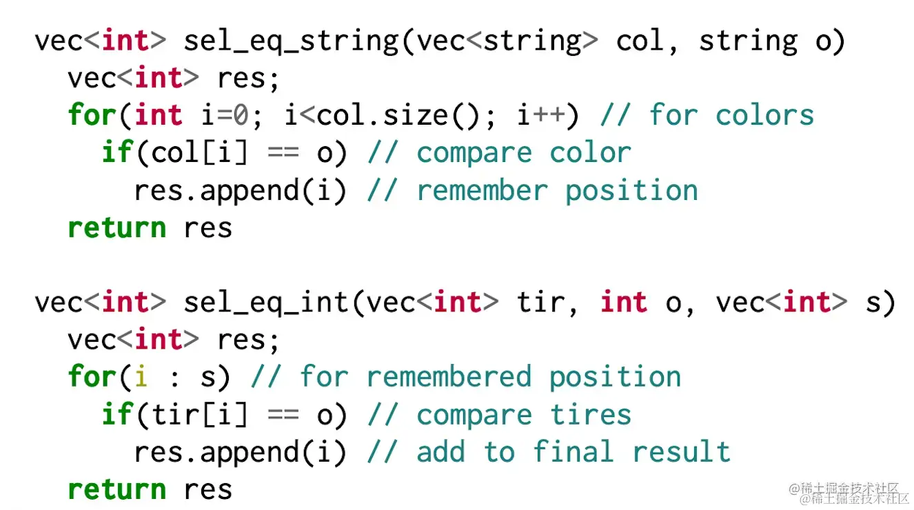 - 列存数据库适合设计出这样的执行模型,从而使用向量化技术