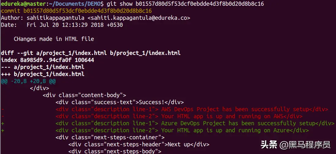 此命令显示指定提交的元数据和内容更改。