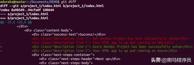 该命令显示了上述两个分支之间的差异。