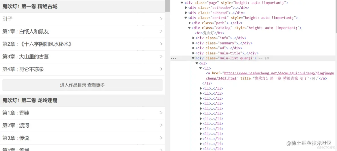 我们按照/切分就有了['https:', '', 'www.51shucheng.net', 'daomu', 'guichuideng', 'jingjuegucheng', '2464.html'] 然后我们取倒数第二个元素就有了b_name
