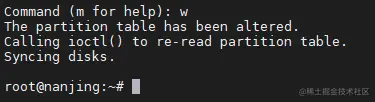 最后再执行命令:partprobe将新的分区表变更同步至操作系统。